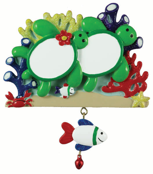 Bring a splash of island joy to your tree with this Sea Turtle Couple Linking Ornament! Featuring two bright green Hawaiian sea turtles (honu) surrounded by colorful coral, this ornament is perfect for couples, siblings, or best friends.