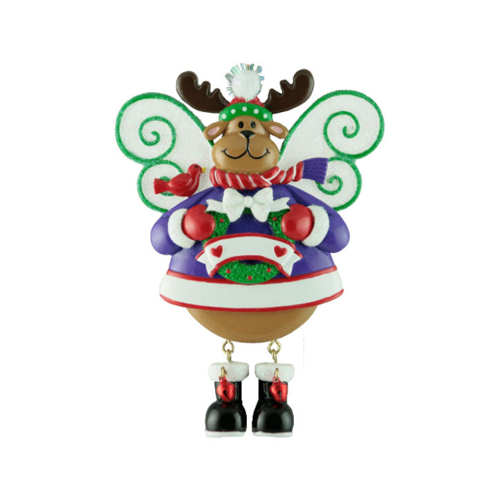 Bring whimsical charm to your holiday tree with our Moose Angel Ornament, featuring glittered wings, cozy winter-wear, dangling boots, and a tiny gift in hand. This cheerful reindeer friend makes a fun and festive keepsake for kids, animal lovers, or anyone who enjoys lighthearted décor.