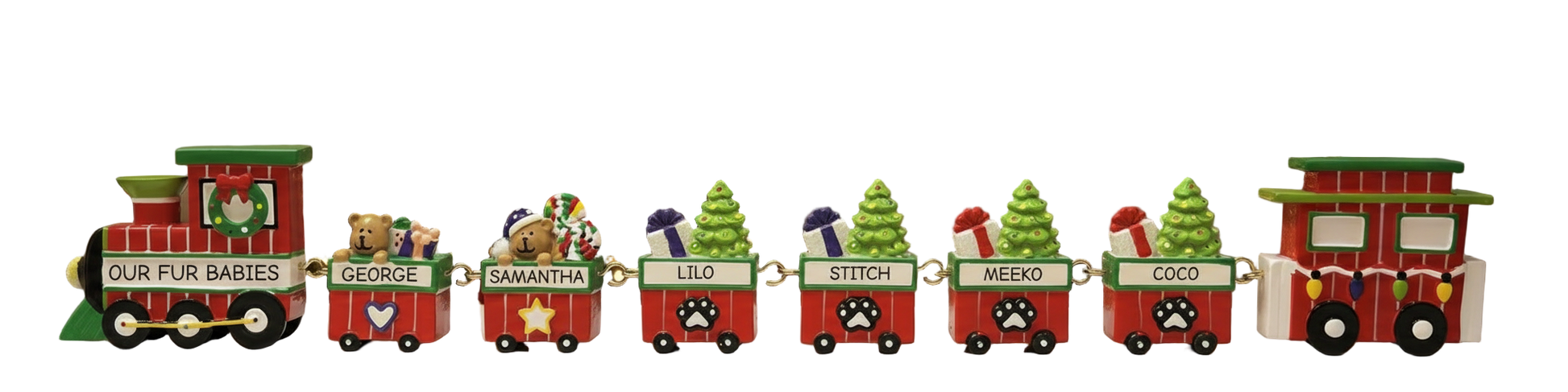 All aboard! Celebrate everyone you love with our Tabletop Train Sets—a customer favorite for over 20 years. Whether it’s parents, kids, or pets, each name becomes part of your family’s holiday story — creating a keepsake that grows with you year after year.