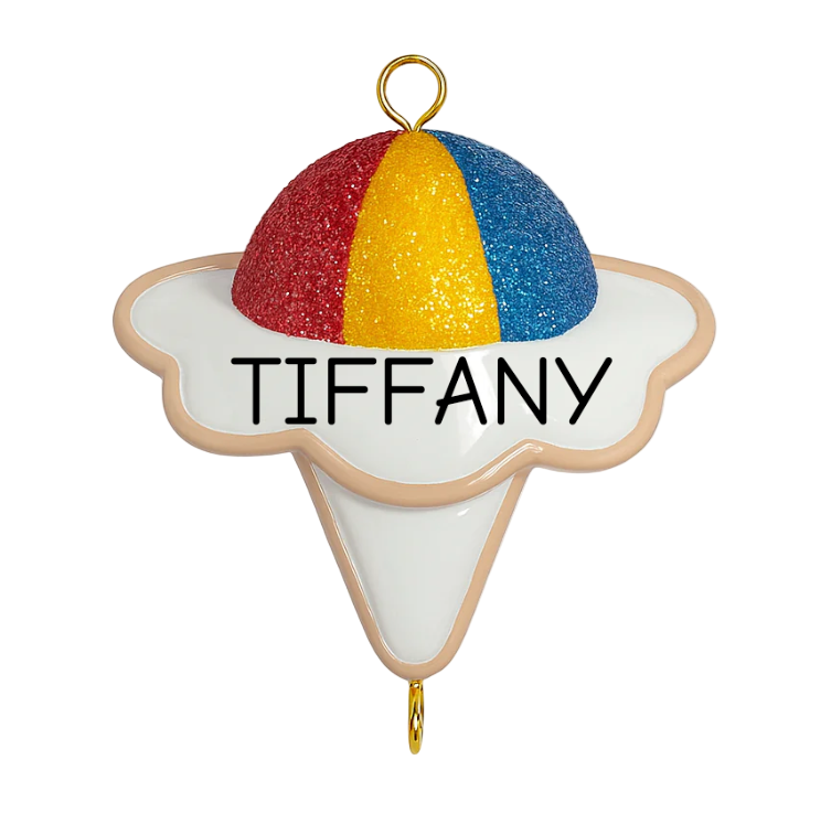 Cool down your linking ʻohana with this sweet and colorful shave ice! Featuring a sparkling rainbow dome and cloud-like cup, this festive treat adds a splash of island flavor to any personalized ornament collection.